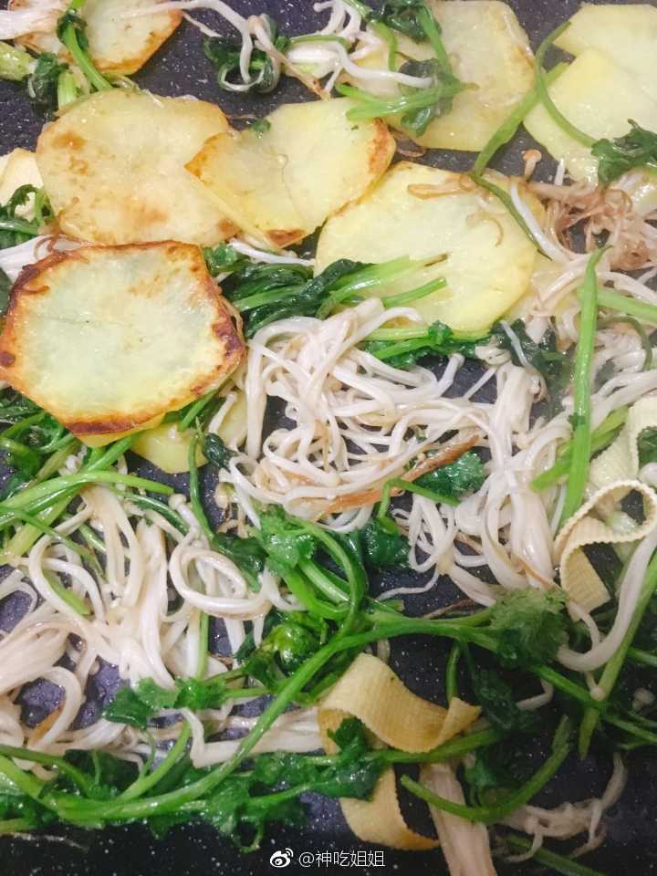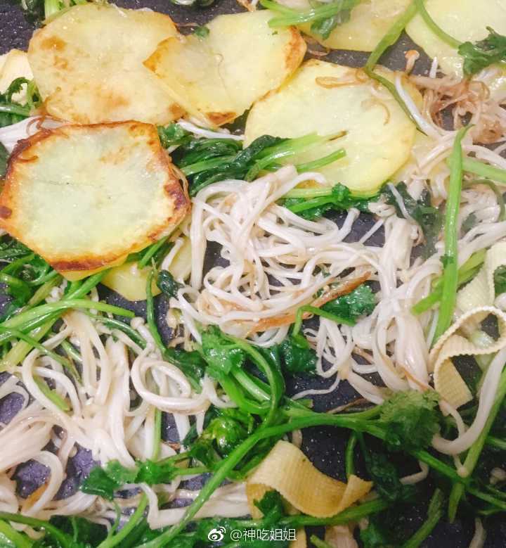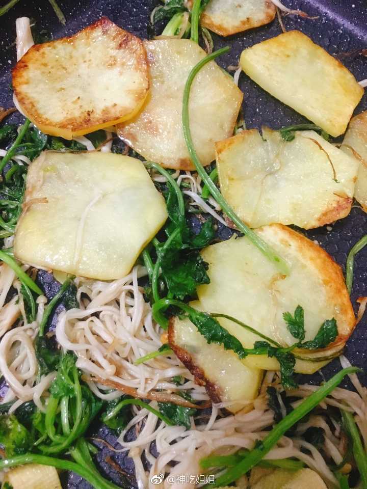 喜欢吃就自己动手做~烤土豆片+香菜+金针菇再拌上花生碎简易版晚餐完成✅ @鲜城