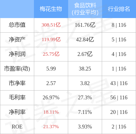 梅花生物(600873)主营业务:氨基酸系列产品研发、生产及销售 梅花生物2022中报显示,公司主营收入142.2亿元,同比上升28.96%;归母净利润25.75亿元,同比上升156.45%;扣非净利润25.3亿元,同比上升159.85%;其中2022年第二季度,公司单季度主营收入75.07亿元,同比上升31.29%;单季度归母净利润14.16亿元,同比上升137.76%;单季度扣非净利润13.94亿元,同比上升137.7%;负债率49.41%,投资收益43.23万元,财务费用4475.79万元,毛利率26.97%。