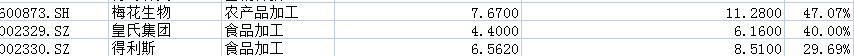 梅花生物、皇氏集团(002329)、得利斯(002330)位列涨幅前三甲