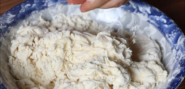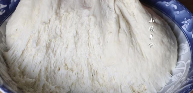 【5】面团发好的标志就是,体积2倍大,扒开有拉丝状态,像老丝瓜瓤一样。