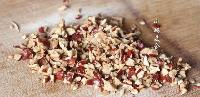 【3】准备10颗红枣,去掉枣核,切成枣丁。