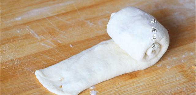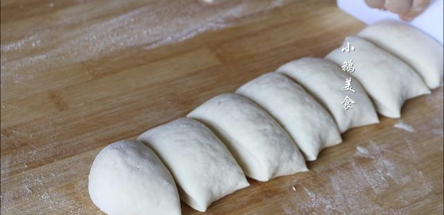【6】发好的面,放案板上揉搓排气,擀成长条,切成8等份。