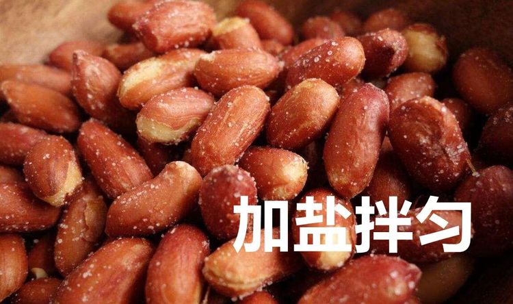 5、最后加盐,这样既入味,又能保持花生长时间不返潮。