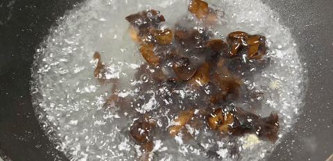 9.热水继续烧开,给木耳焯水2分钟后孔数捞出过凉水