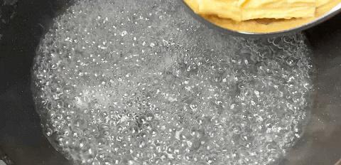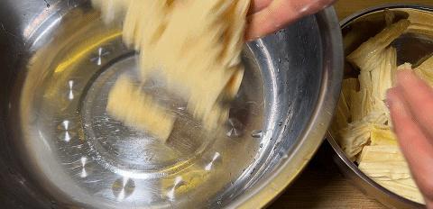 8.烧一锅开水,给腐竹焯水,烫10秒左右即可捞出