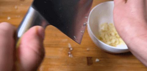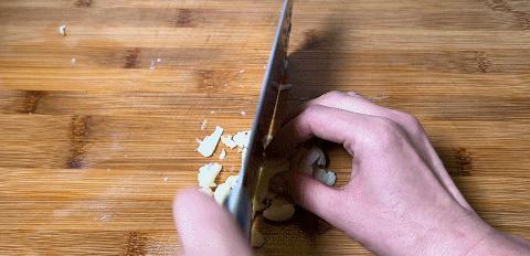 4.大蒜几粒先拍散,再剁成蒜末放在小碗中备用