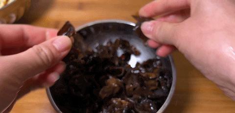 3.木耳提前泡发,洗净后把大的掰成小朵备用