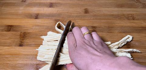 2.腐竹提前泡发,切成长段,大概再4厘米左右