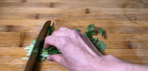 5.香菜择洗干净,切成香菜段放在小碗中备用