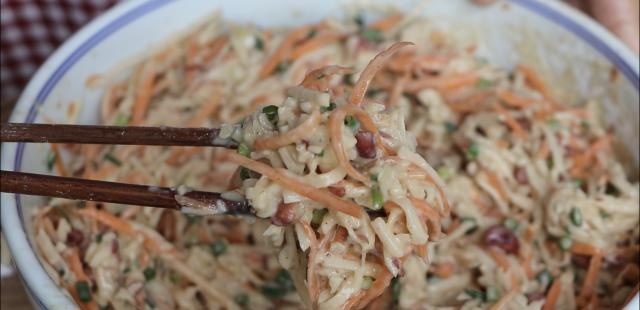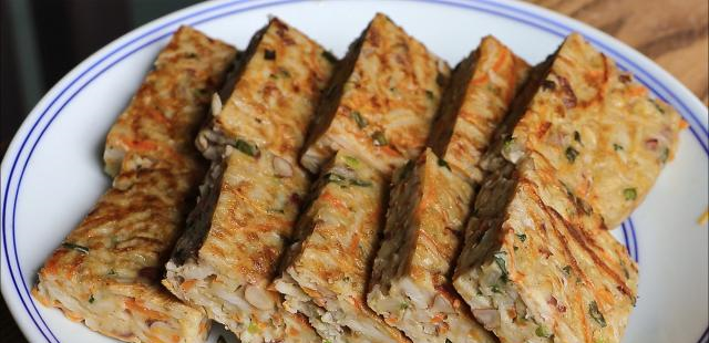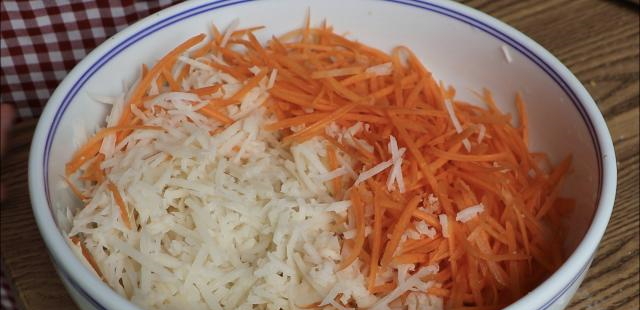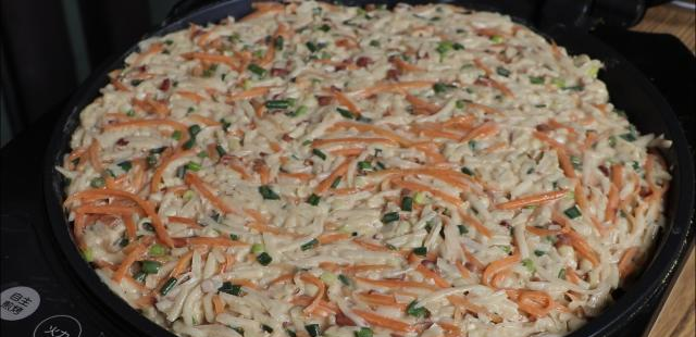 大家好,我是热爱生活热爱美食的小鹅。每天分享一道家常美食,希望可以在这里结交更多热爱美食的朋友,一起学习,相互进步。今天小鹅用莲藕和花生分享一道懒人早餐,营养美味,做法也简单,早上大概十几分钟就搞定了,一张饼就可以解决全家早餐,下面来看做法吧。【所需食材】莲藕1节,花生1把,胡萝卜1根,鸡蛋3个,葱花,盐,胡椒粉,面粉1大勺、食用油适量【具体做法】1、 1把花生米洗净,提前浸泡10分钟,切碎一点备用。2、 莲藕去皮擦成细丝,胡萝卜擦成细丝,放入盆中备用。
