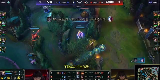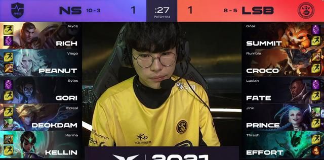 2021LCK夏季常规赛第八周,第二轮接近尾声阶段,LCK的季后赛席位基本已经锁定,后四名队伍只剩理论机会争夺季后赛名额,前六名的队伍则是为了排名更进一步而奋斗!焦点战NS对战LSB,双方也是打到了决胜局,第三局比赛里NS选择抢下Summit发挥出色的佛耶戈,摇摆到打野位给小花生使用,下路强势对线双人组EZ卡尔玛,而沙盒方面抢下卢锡安之后,选择摇摆到中路使用,Summit选出纳尔对阵Rich杰斯!