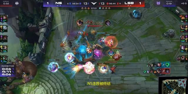 最终利用远古龙buff沙盒直接正面逼近,仅剩一座残血门牙塔的NS实在无力回天,三路高地被破兵线压力巨大,门牙塔一破沙盒全员化身分奴,不管不顾拆基地水晶成功一波结束比赛,以让一追二的方式拿下了比赛,鏖战57分钟终结了目前LCK黑马战队NS的五连胜,目前的排名也晋升到积分榜第三位!