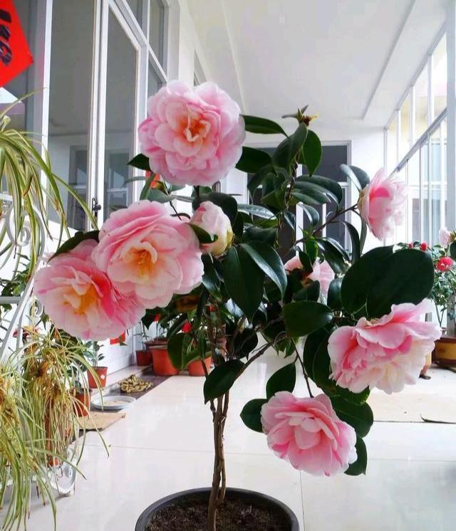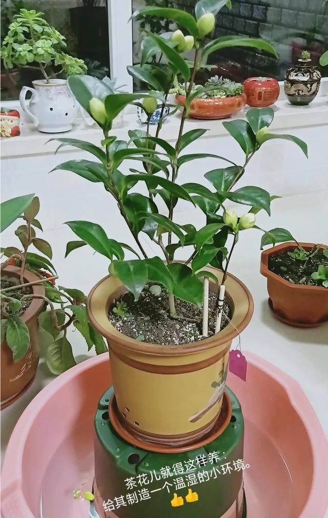 也可以把茶花放在一堆花的中间,通过过浇水多,为空气的蒸发来增加空气湿度。