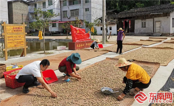 村民正在晾晒花生。黄玲 摄