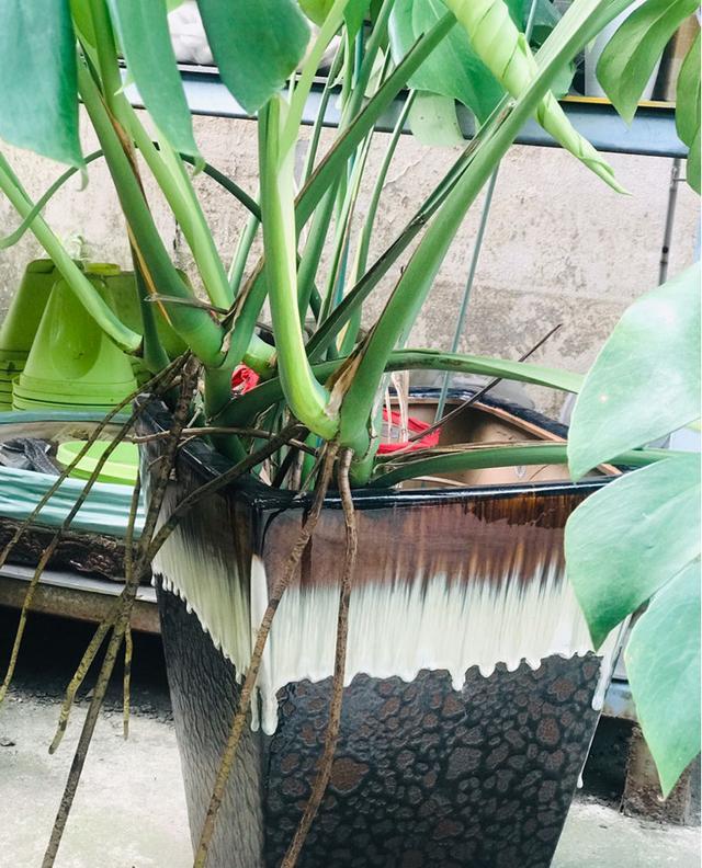 龟背竹很容易长气生根,其实长了气生根的枝条可以摘下来直接插到土壤里面,经过细心养护之后又能重新长成一株新的龟背竹。其实龟背竹长出气生根来,就是为了吸收水分,咱们往龟背竹的气生根上面喷上点水,气根就会长得更加壮哦~