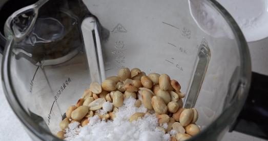 倒进破壁机里,把白糖和盐都倒入,选择酱料功能,开启即可。中间要注意停顿,这样也是等待花生出油。