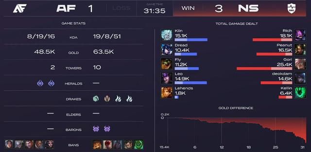 双方实力的差距就跟如同比分一样,NS算是碾压AF,不管哪个方面都是NS占优,尤其中下野差距很大,Deokdam以及小花生对位都打爆对手,同样Gori也展现单杀Faker的实力,告诉Fiv他还不够看。