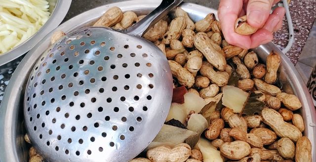 想要花生入味快一些,我们可以把花生挨个捏开,这样汤汁就很容易浸入到花生里面,花生仁就有更好的入味效果了。因为花生可以吸收很多的料汁,为了防止花生向上漂,我们也可以在花生上面放一个篦子压住,这样花生就会浸泡在料汁里,就能更好的入味了,然后浸泡2个小时以上,直到自己喜欢的入味程度就可以开吃了。煮五香花生时,怎样才能不黑还入味呢?学会1煮2泡,保证一次成功。不用花钱出去买了,经济又实惠。