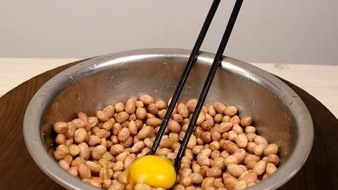 原来想要炸出来的花生不发黑,下锅前要加上它,那就是淀粉,先打烂两个鸡蛋,搅拌均匀,再把鸡蛋液倒在花生米上,加入适量的淀粉,让花生裹上一层淀粉再下锅炸。大部人在做挂霜花生的时候忽略了这个小步骤,所以做出来的花生发黑。下锅前要把花生裹上一层淀粉,下面就来讲讲挂霜花生的具体做法吧,零失败!挂霜花生的正确做法,加上它,花生酥脆不发黑。