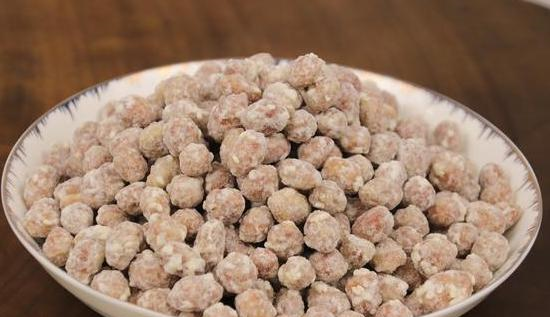 以上就是挂霜花生的全部内容,零失败!挂霜花生的正确做法,加上它,花生酥脆不发黑,花生下锅炸之前,将鸡蛋搅拌均匀,把鸡蛋液倒在花生米上,把淀粉撒在花生米上,用手抓匀,让花生米被淀粉包裹再下锅,这样花生才不会出现发黑的现象。