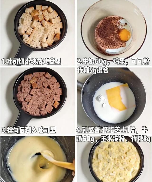【4】准备一个锅,将1片低脂芝士、5克代糖、60克牛奶和4克玉米淀粉一起混合均匀至无干粉状态。