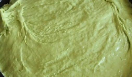 然后把调好的面糊倒进模具里。8分满就可以了。抹平。