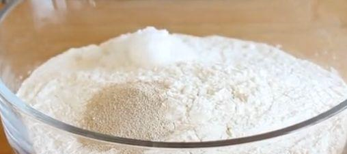 500克面粉倒进碗里,加入5克酵母,10克白糖促进发酵。