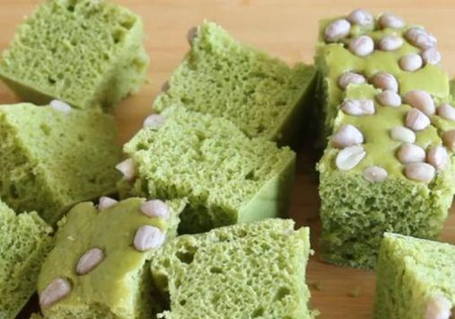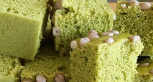 然后切成小块。这道营养又美味的菠菜花生发糕就做好了,吃起来非常的香甜喧软,特别好吃,我一连吃了好几块。