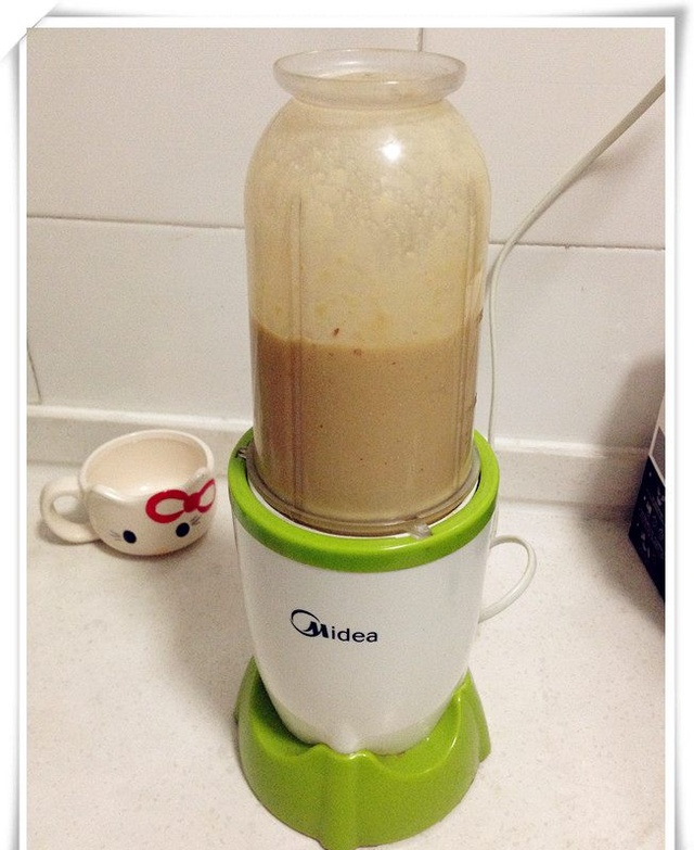 4、刚开始打不会特别细腻,会有花生颗粒,不过也很香,如果喜欢吃颗粒的这样也不错,如果喜欢吃细腻的就再多磨一会儿;