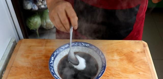 这个锅里倒入适量的老陈醋烧热,陈醋可以多倒点,陈醋的量比花生的量稍微少一些。陈醋烧热以后倒入一个碗里,里面加入白糖,少许的盐,加入生抽搅拌均匀。可以尝下味道
