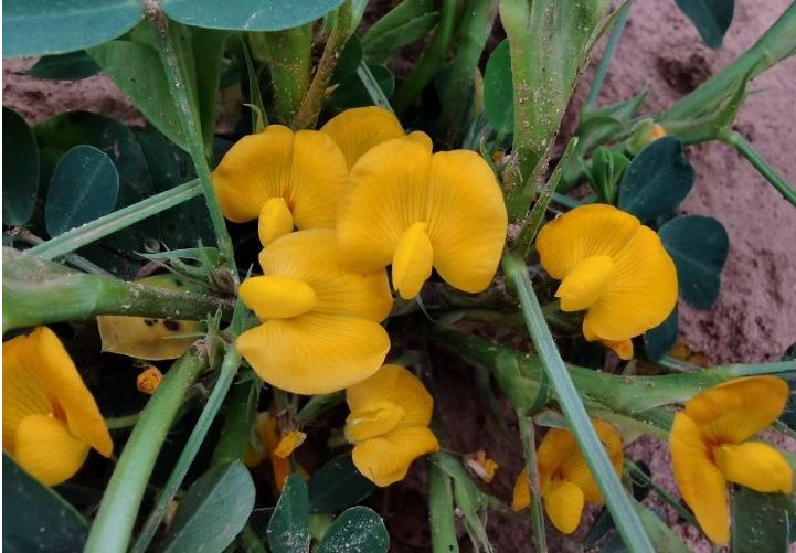 我国北方春播花生单株开花数40 ~ 200朵,交替开花型品种多于连续开花型品种,晚熟品种多于早熟品种。花生开花的适宜温度为23 ~28C,适宜的土壤相对含水量为60% ~ 70%,降至30%一40%时,开花就会中断;弱光条件能减少花生的开花数。在大田条件下,植株形成荚果后开花数即明显减少,如不断摘果,则会继续大量开花,说明大量荚果的形成对开花有一定抑制作用。