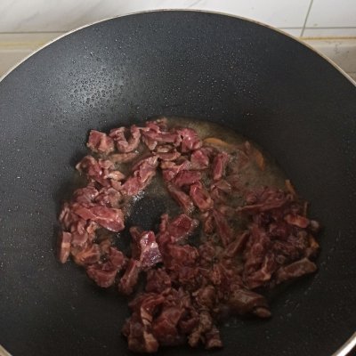 4、放入牛肉滑炒一下