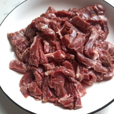1、牛里脊肉切条,加调料腌制一下,
