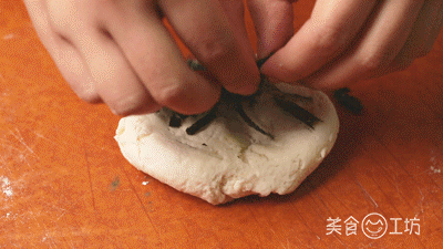 3.揪一小块面团,搓圆,用手指按扁,包入花生再揉搓成圆。(这一步实在有点没事找事做的感觉)