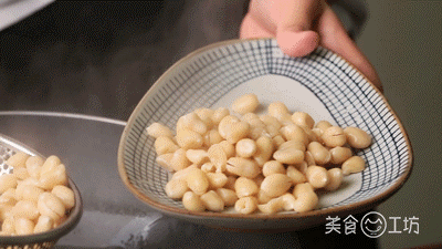 1. 花生浸泡10分钟,使表皮膨胀,用手搓去表皮,下锅加醋煮5分钟捞出,加醋可以使花生米颜色更白。煮好的花生米晾凉后放进冷冻室,冰冻半小时,多做一步,花生米更酥脆。