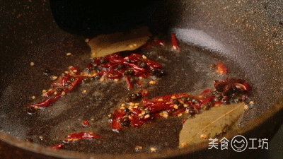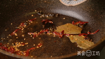 4. 锅里留一些油,把浸泡过的香料下锅炒香,香料浸泡之后不容易炒糊。