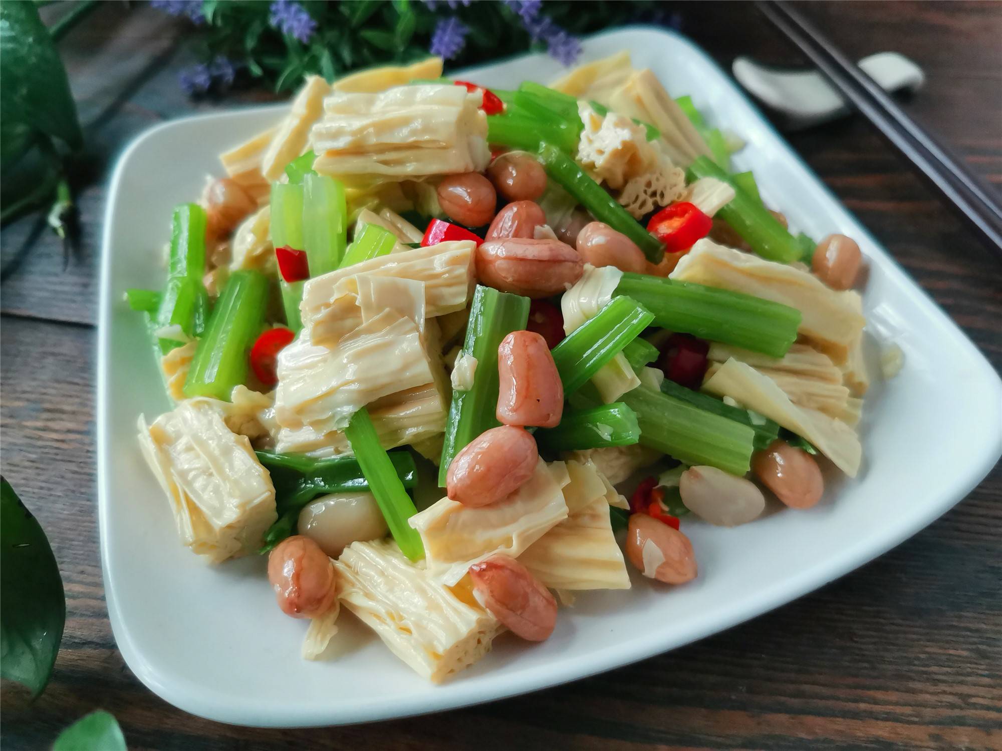 【菜名】:腐竹花生米拌黄瓜