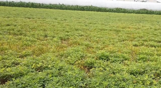 和问题一的情况相反,花生叶片继续生长,不见衰落,虽然看起来长势不错,干物质积累也不少,但营养向荚果输送的少,荚果生长慢,到了后期温度下降之后,可能还是不饱满,也会降低产量。这种情况一般是因为氮肥追施过多,雨水多,控旺效果差导致的。