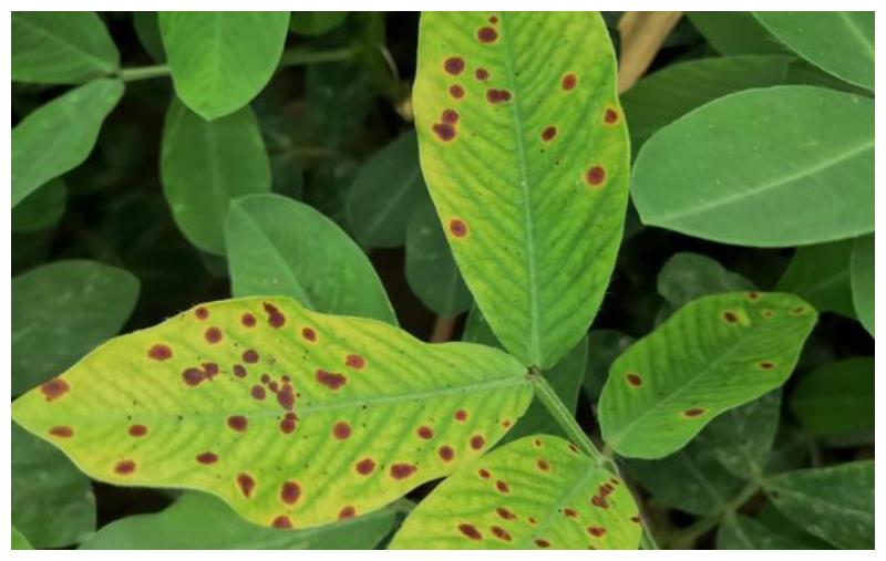 花生荚果膨大期,也是花生病虫害的高发期,发生最普遍,危害最严重的病害就是花生叶斑病,在适宜的环境条件下,几天内就可蔓延至整个地块,造成大量叶片发病和脱落,叶片光合作用降低,严重影响荚果的膨大,出现空壳、秕粒、不结果的情况,因此,在花生结果期,可用40%唑醚·戊唑醇悬浮剂30毫升,兑水15~30公斤均匀喷雾,可有效预防花生叶斑病的发生。