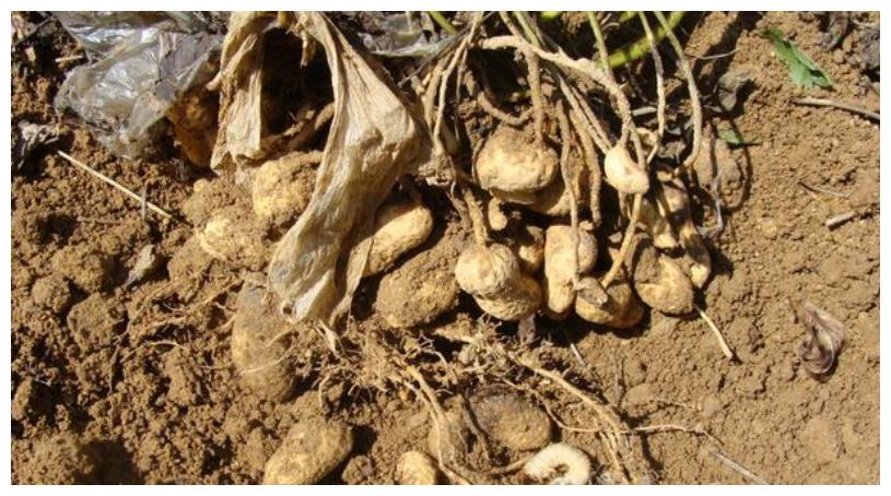 立秋后,随着温度逐渐下降,危害花生的蛴螬也开始上升。8~9月份,是蛴螬危害最严重的时期,一旦防治不及时,就会造成大量荚果被害,严重影响花生的产量和品质,8月份是防治蛴螬的最佳时期。可用3%噻虫嗪颗粒剂1~2公斤,拌细沙20公斤,顺垄撒施在地面上,由于噻虫嗪,具有很好的水溶性和内吸传导性,药剂能快速渗透到土壤内和被根系吸收,传输到植株的各个部分。杀灭危害荚果的蛴螬害虫。