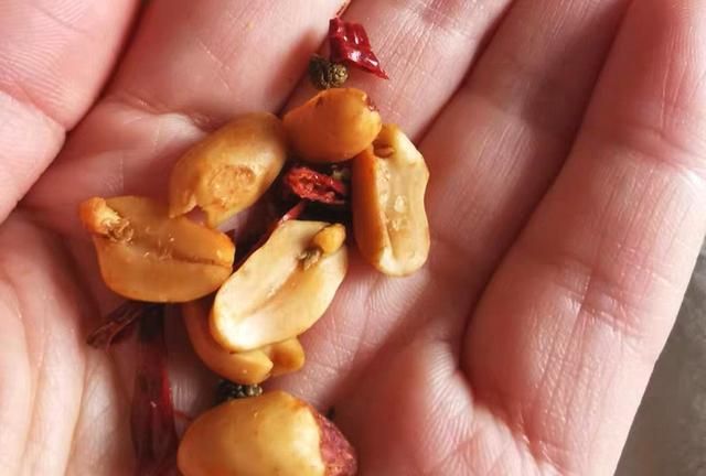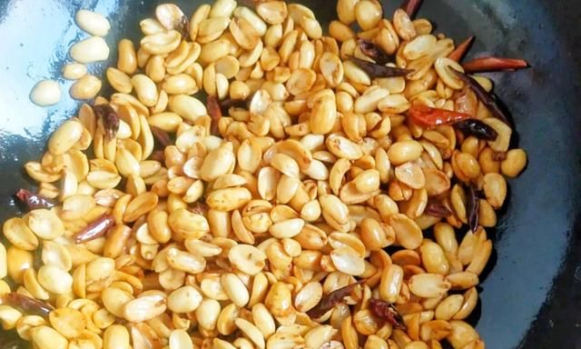 3、最后与各种辛辣调料炒制时,只要让花生米吸收入味、炒出浓浓的辛辣香就可以铲出离锅了,别贪时间太长。
