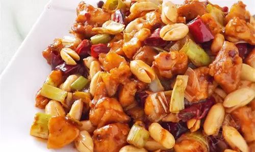 8、见调料汁变浓稠并均匀的包裹在食材上后,加入炸好的花生米,迅速翻炒均匀即可装盘。