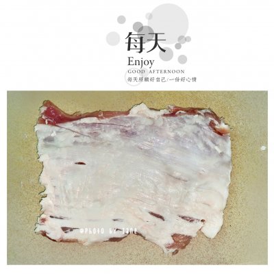 1、①猪板筋切粗条,用盐、油拌匀冰箱腌制1-2天