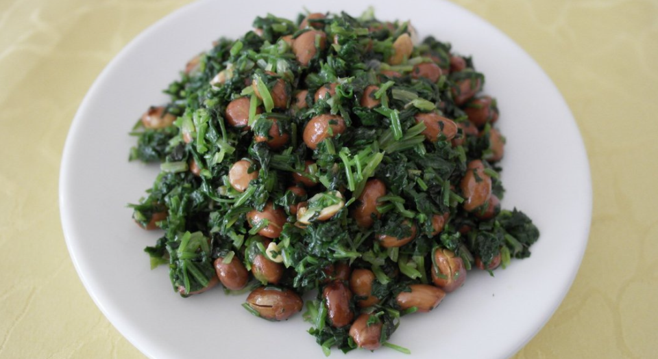 【所需食材】:香菜 900克、花生米 150克、食用油少许、食盐3-4g、蚝油10ml、生抽2勺、芝麻油1勺、味精半勺