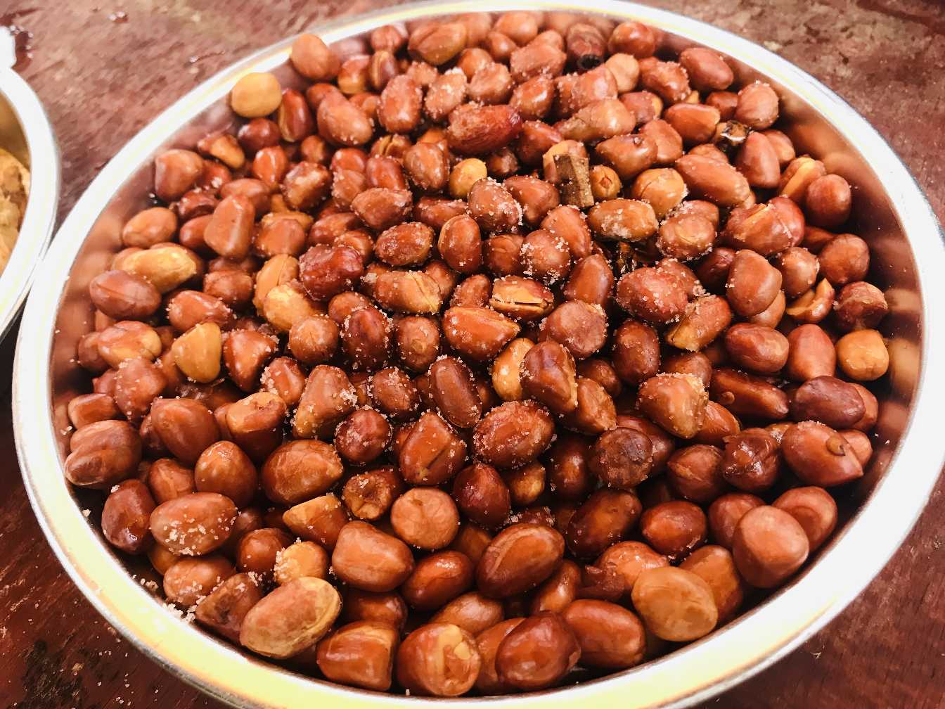 把压碎的花生放到锅里,再用铲子进行翻炒,搅拌均匀之后就可以出锅了。(也可以稍微放一点醋,提升口感)