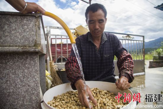 温庆瑞正在清洗花生。董观生摄温庆瑞的妻子将洗净的花生放入锅中,点上柴火,间歇时她说:“农民干点活真不易,但现在我们经验也丰富了,种和收的时候政府又会提前告诉我们近期的天气情况,还开启了电商平台,不仅高产,而且价格也挺不错的,生活是越来越好了!”(完)