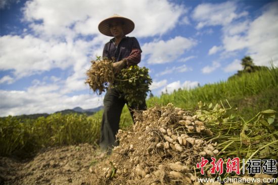 中新网福建新闻7月27日电 (董观生 江逸轩)大暑节气前后,是花生收获的季节,勤劳的村民们日出而作,日落而息,精心耕耘着田间的朴实无华之物——花生。