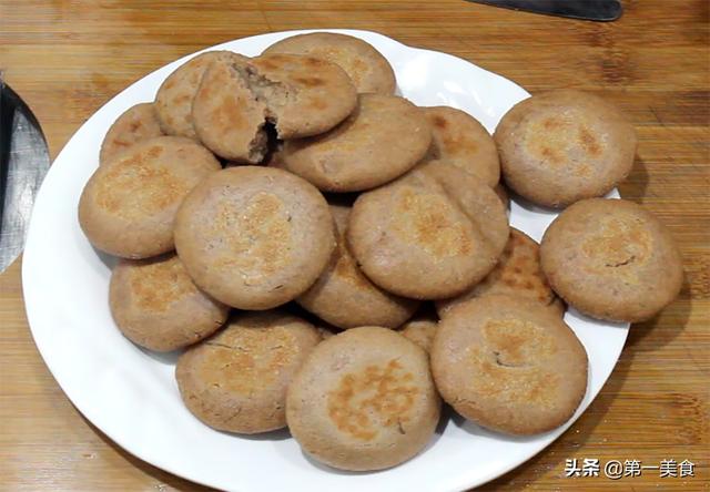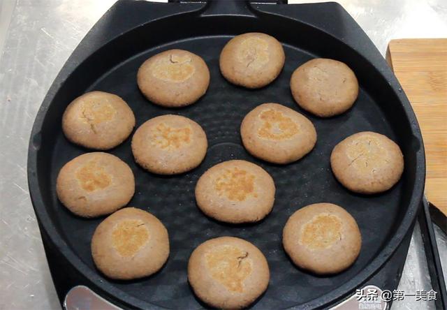另一个烙成金黄色时再次翻面,保持小火烙5分钟左右,饼两面都呈金黄色,摁压快速回弹时即可出锅。