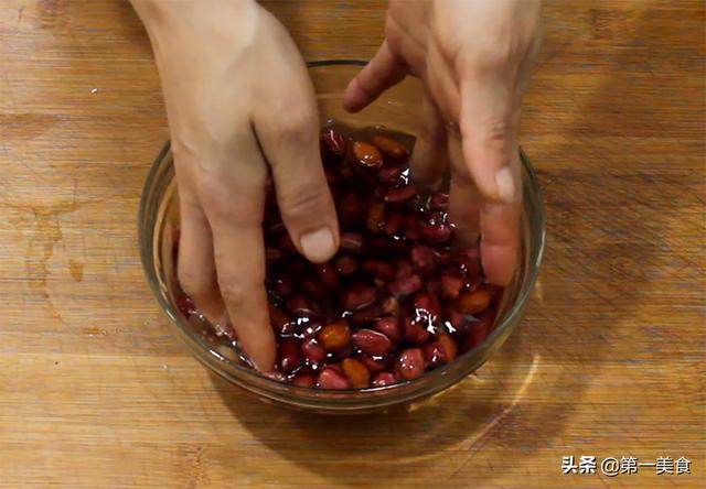 准备干花生200克,放入清水中,把上面的灰尘和杂质清洗干净后捞出。
